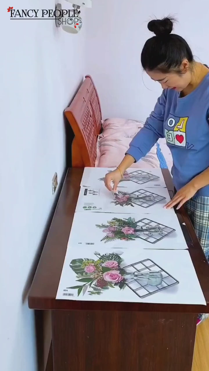 Home Wall Art Grid Flower Pattern Sticker Office Decals The Flowers
